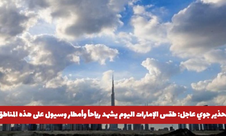 طبقاً لبيان الأرصاد، يُنتظر أن يكون طقس الإمارات اليوم غائماً جزئياً إلى غائم في فترات متقطعة. من المتوقع تكوّن سحب ركامية فوق بعض المناطق، خاصةً الجزر والمناطق الشرقية والساحلية الشمالية، وقد تُسجل هذه السحب هطول أمطار متفاوتة الشدة، وفق ما أعلنته الجهات المختصة.