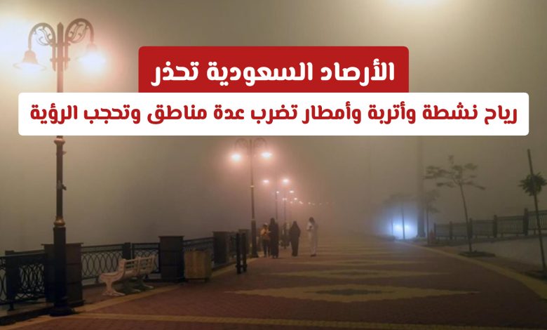 ستستمر الرياح النشطة المثيرة للأتربة والغبار في عدة مناطق رئيسية مثل: الحدود الشمالية، الجوف، تبوك، حائل، المدينة المنورة، الرياض، مكة المكرمة، الباحة، عسير، مع توقع ظهور الضباب ليلاً وفي ساعات الصباح الباكر، حيث سيشمل الضباب أيضًا مناطق جازان والمنطقة الشرقية.
