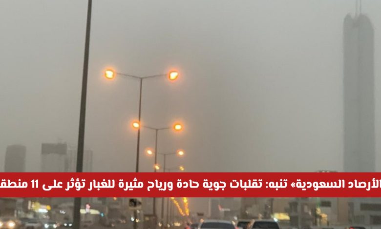 الأرصاد الجوية السعودية تحذر من تقلبات حادة: رياح وغبار تؤثر على 11 منطقة حتى المساء