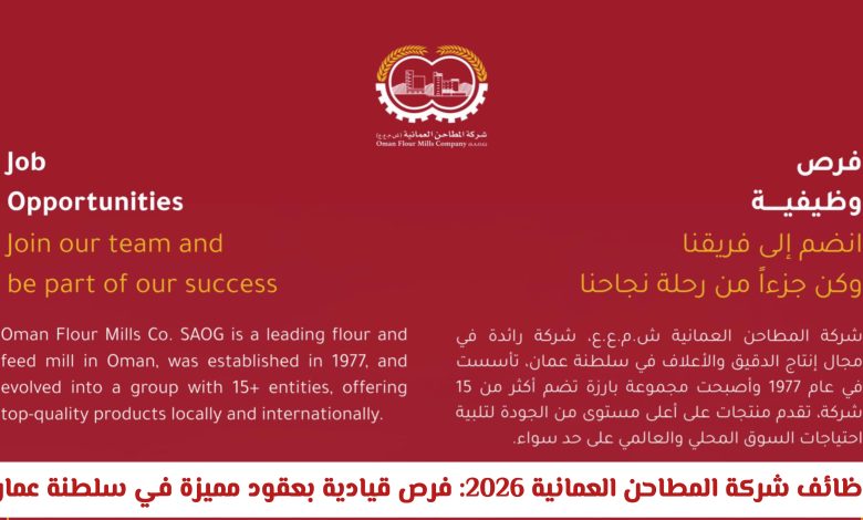 فرص وظيفية قيادية بشركة المطاحن العمانية 2026 بعقود مميزة في سلطنة عمان