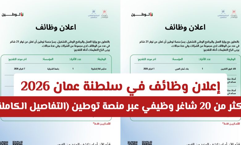 الرئيسية/سلطنة عمان/فرص عمل شاغرة في سلطنة عمان 2026: اكتشف أكثر من 20 وظيفة متاحة عبر منصة توطين (معلومات شاملة) سلطنة عمان فرص عمل شاغرة في سلطنة عمان 2026: اكتشف أكثر من 20 وظيفة متاحة عبر منصة توطين (معلومات شاملة) admin-cdnمنذ يوم واحد0 0 أقل من دقيقة admin-cdnمنذ يوم واحد0 0 أقل من دقيقة فيسبوك X لينكدإن Tumblr بينتيريست Reddit VKontakte مشاركة عبر البريد طباعة